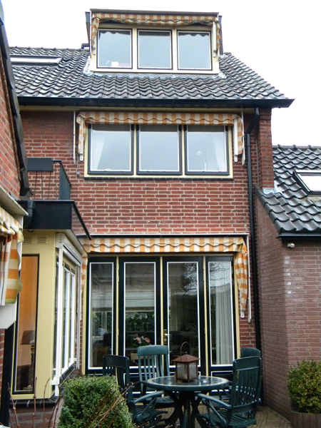 Schilderen van de gehele buitenkant bij een woonhuis. Gekozen is voor de kleuren groen, wit en geel wat een chique geheel opleverd. Doordat alles, qua kleurgebruik, netjes op elkaar is afgestemd is het een mooi en rustig geheel geworden.